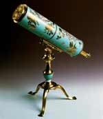 allows either a 4-inch or 3-inch aperture. One extra eyepiece. The 25-inch long body is mounted on a simple compass joint, tapering column, and folding tripod stand.