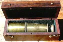 seen in the photo is typical of the brass scopes made in India today. The central part of the barrel rotates to focus the scope. It is heartening to see
