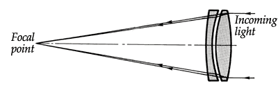 (actually several points very close together). The main, or objective lens can be a two-element doublet, as in the illustration here, or a single lens. A single lens does a poor job